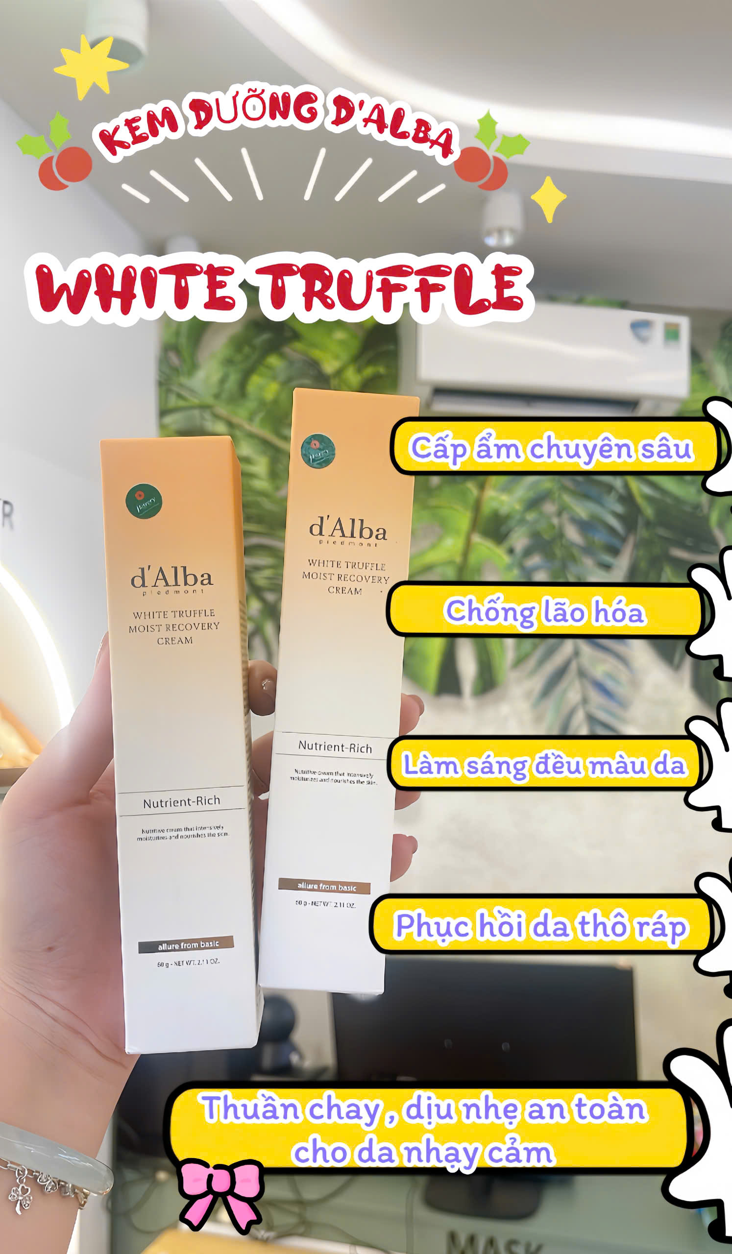❌Kem dưỡng D’alba White Truffle Moist Recovery Cream là loại kem CẤP ẨM CHUYÊN SÂU kết hợp LÀM TRẮNG VÀ LÀM TRẺ HOÁ DA CHỐNG LÃO HOÁ với chiết xuất từ nấm Truffle trắng cung cấp dưỡng chất dồi dào, hồi sinh làn da xỉn màu