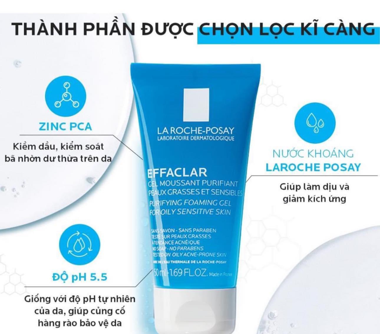 ữa Rửa Mặt La Roche-Posay là dòng sản phẩm sữa rửa mặt chuyên biệt dành cho làn da dầu, mụn, nhạy cảm đến từ thương hiệu dược mỹ phẩm La Roche-Posay nổi tiếng của Pháp, với kết cấu dạng gel tạo bọt nhẹ nhàng giúp loại bỏ bụi bẩn, tạp chất và bã nhờn dư thừa trên da hiệu quả, mang đến làn da sạch mịn, thoáng nhẹ và tươi mát. Công thức sản phẩm an toàn, lành tính, giảm thiểu tình trạng kích ứng đối với làn da nhạy cảm.