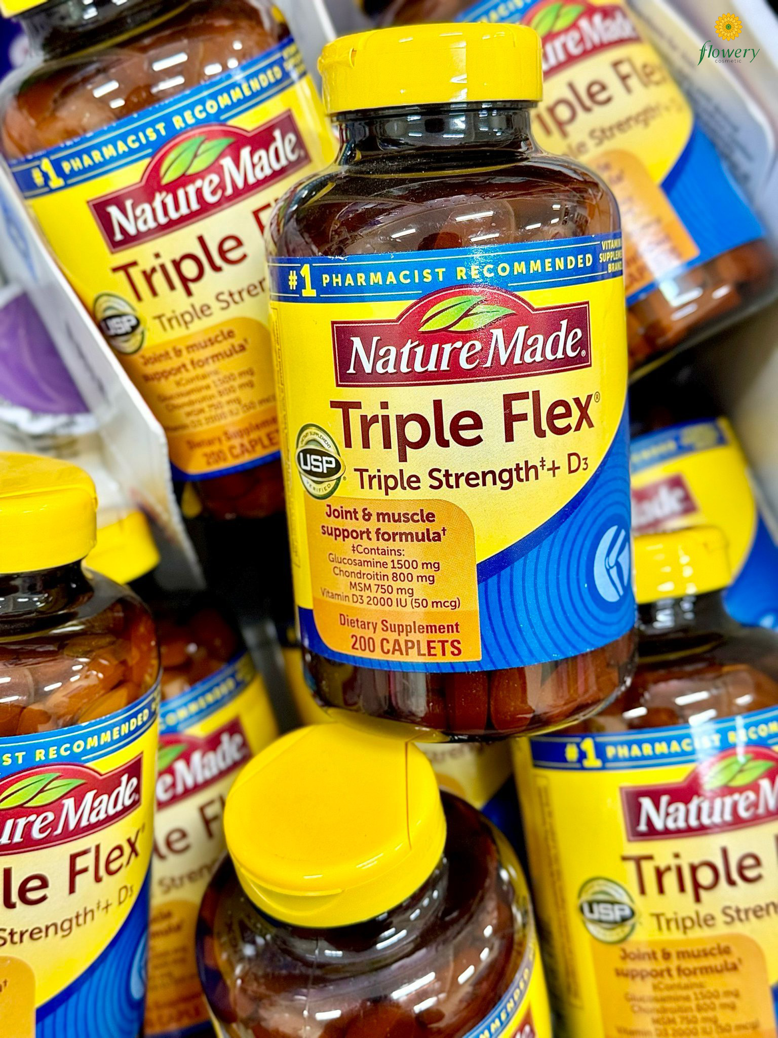 Nature Made Triple Flex là một trong những dòng sản phẩm bổ sung dưỡng chất dành cho xương khớp được sử dụng rộng rãi trên thế giới. Triple Flex với công thức 3 thành phần Glucosamine + MSM + Chondroitin được nghiên cứu và sản xuất bởi hãng Nature Made danh tiếng của Mỹ là sản phẩm mang lại nhiều lợi ích sức khỏe cho hệ xương khớp, hỗ trợ điều trị hiệu quả các bệnh về xương khớp. Nếu bạn đang mắc phải các triệu chứng đau nhức về xương khớp dai dẳng thì Triple Flex là một sản phẩm tối ưu để giải quyết vấn đề này.